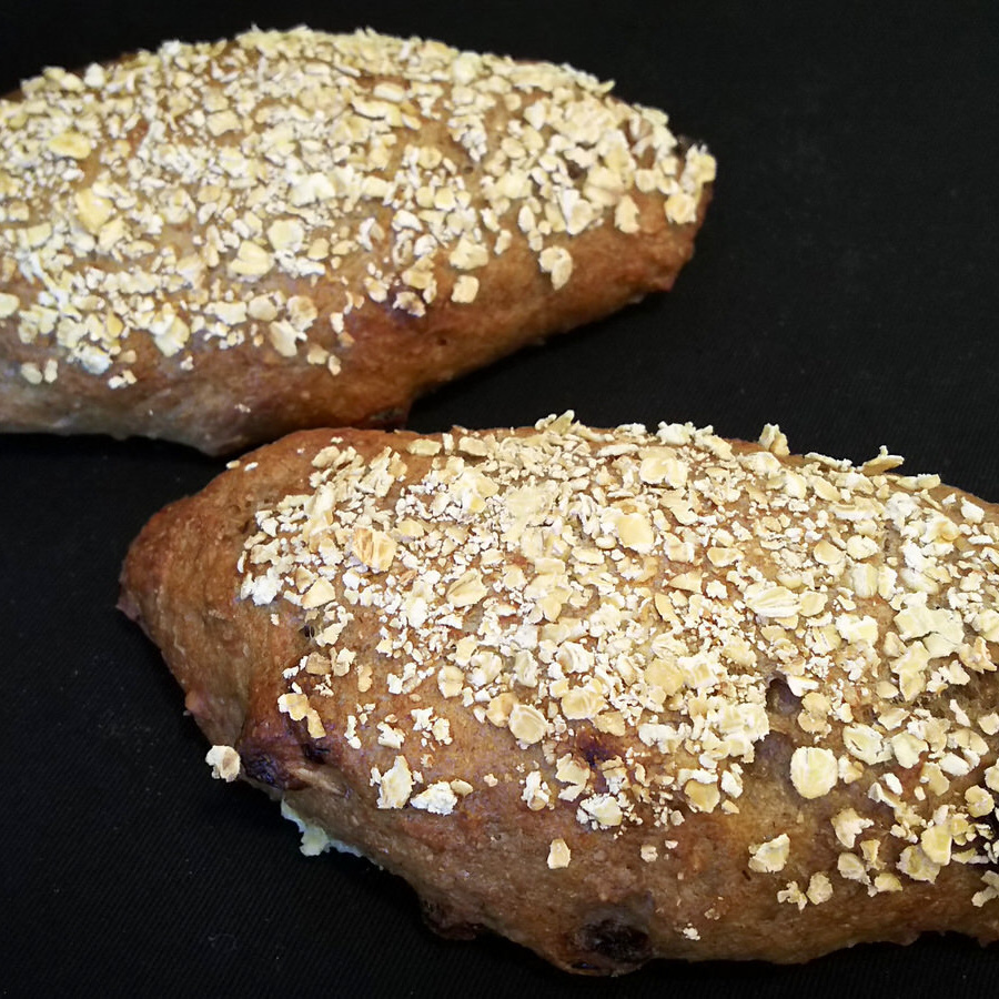 北海道産小麦100% 白ごま、黒ごま、アマニ、オーツ麦、ひまわりの種など雑穀とやわらかく蒸したいちぢく入り。 ほんのり甘く朝食におすすめです。