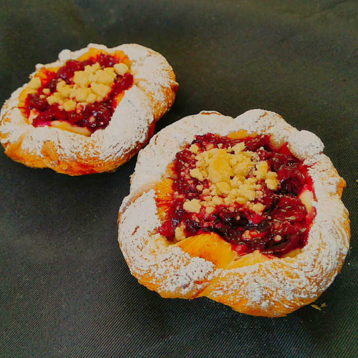 デニッシュ生地の上には、砂糖で煮たグリオット種のチェリーがたっぷり。相性の良い蔵王のクリームチーズとホワイトチョコが中に入っています。甘味と酸味のバランスが絶妙!