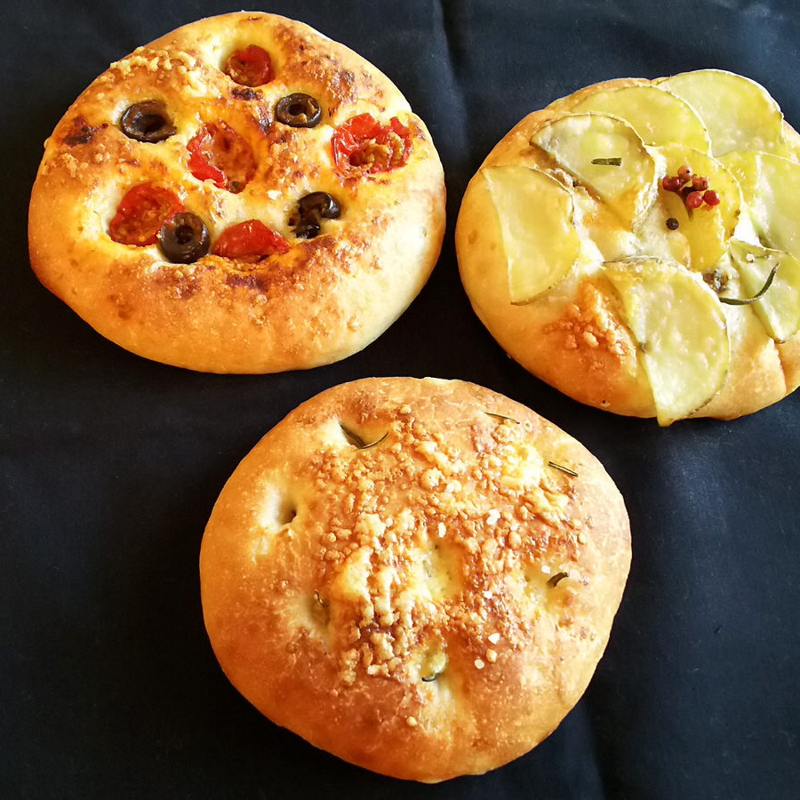 自家製天然酵母で発酵させた本格的欧風田舎パン。軽い酸味と小麦の風味を感じられる自信のパンです。見た目ほど固いパンではないので、ハム・チーズなど色々なおかずをのせてどうぞ!