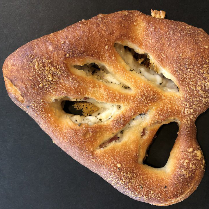 ローストしたくるみがたっぷり入っています。生地にボイルしたじゃがいもが練り込まれているので、しっとりもっちりしています。
