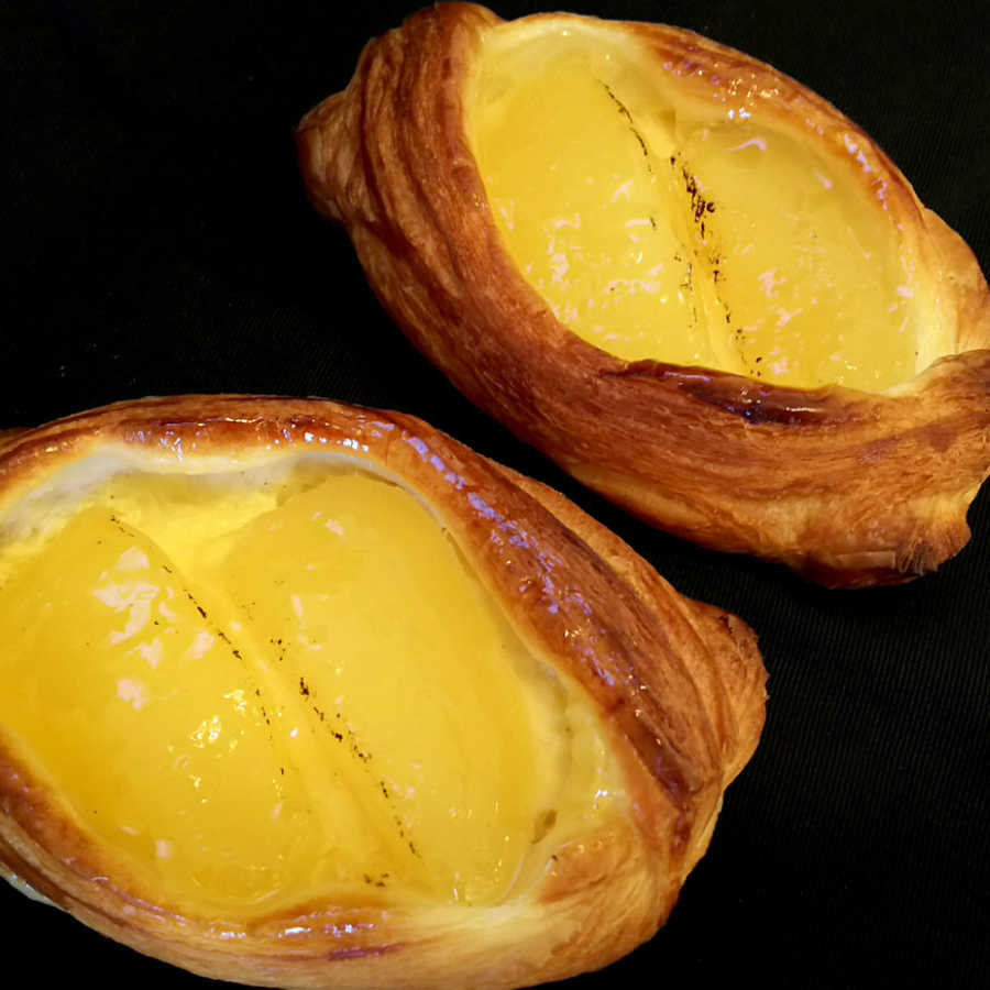 サクサクデニッシュ生地にコンポートした青森産りんごと自家製カスタードクリーム。 オープン以来の人気の定番です。