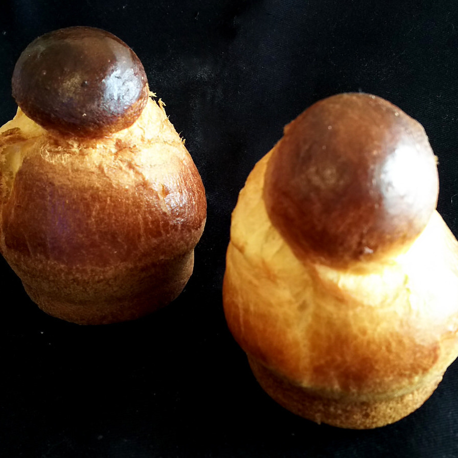 伝統的なフランスのリッチなパン、頭のついたブリオッシュという意味。 卵と牛乳、バターをたっぷり使い、一切水は使ってません。