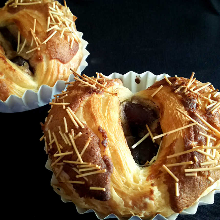 サックサクのデニッシュ生地に、白ワインで煮た洋梨。中にチョコと自家製カスタードクリームが入ってます。 チョコと洋梨とサクサクデニッシュの相性が抜群。