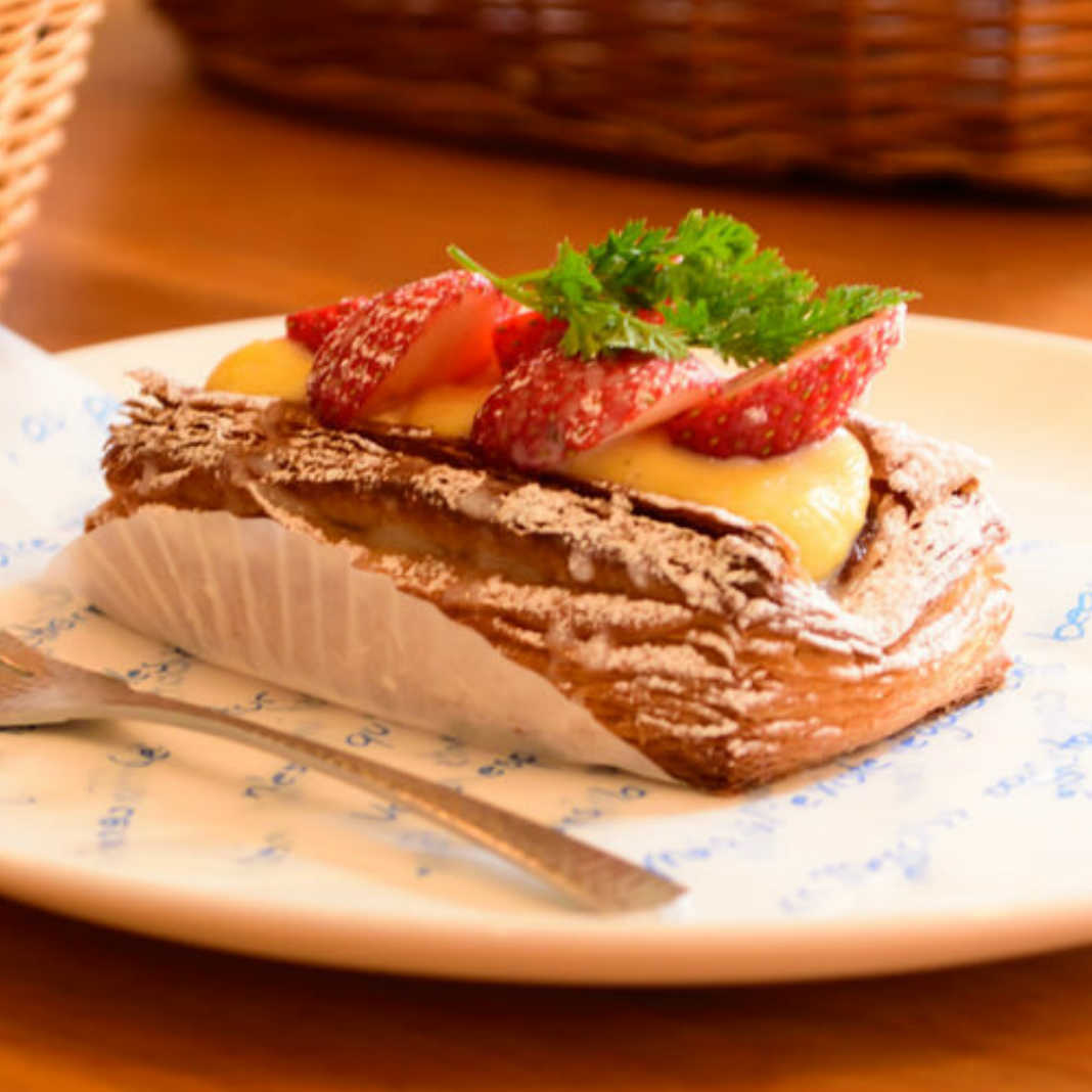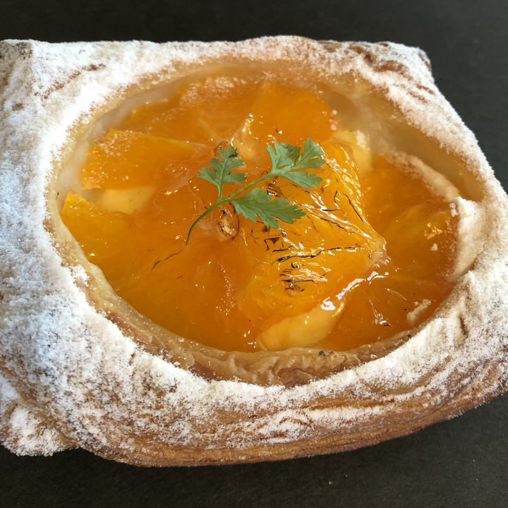 サクサクデニッシュ生地に、はちみつしょうがのシロップで煮込んだあんずが、スポンジ、自家製カスタードクリームとともに のってます。ほどよい酸味をお楽しみ下さい。
