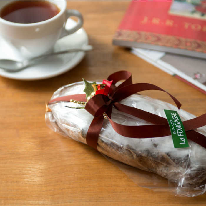 ドイツ(ドレスデン地方)発祥のクリスマスのパン。ローストしたクルミ・アーモンド・カシューナッツと、長時間、洋酒やスパイスに付け込んだ8種類のフルーツがたっぷり入っています。涼しい所で2ヶ月程日持ちします。薄くスライスしてお召し上がり下さい。